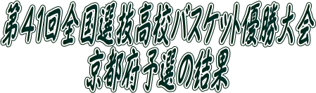 | ▽準々決 洛 南 168−17 宮 津 福知成美 70−68 山 城 鳥 羽 71−67 城 陽 東 山 125−60 南 京 都 ▽準決勝 洛 南 101−71 福知成美 東 山 106−75 鳥 羽 ▽決勝 洛 南 98−90 東 山 ※洛南は11年連続27度目の優勝、34度目の出場 |